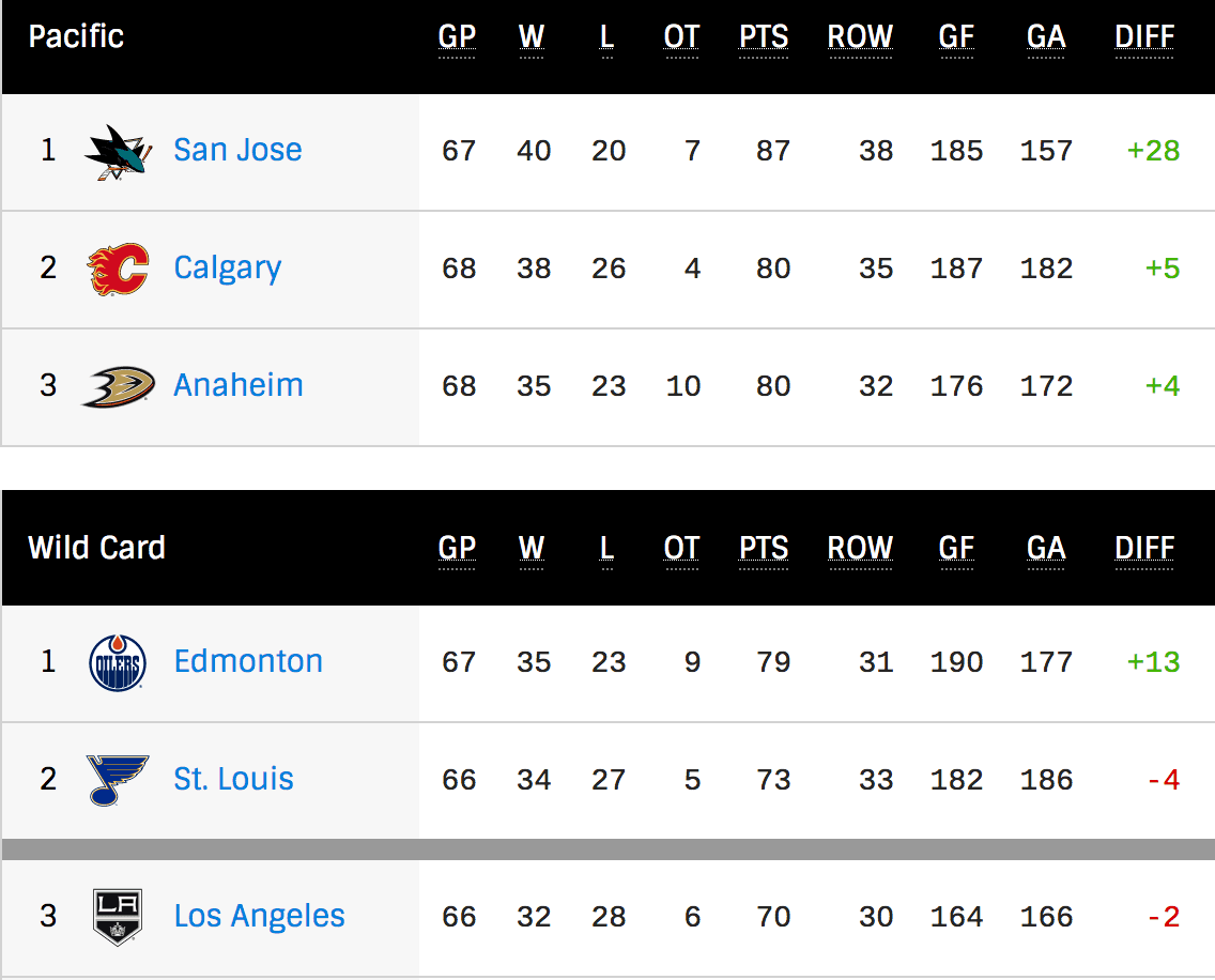 The Flames magic number to clinch a playoff spot began the night at 12.5. The win dropped their magic number to 11.5, meaning any combination of Flames wins or Kings losses adding up to 11.5 cements their playoff spot. The Kings play Washington in the late game tonight, so the number may drop to 10.5 by the end of the night’s play.