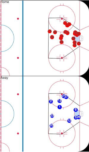 Home | 1 | 2:01 | Monahan | 1 | 5 | 7 | 8 | 23 | 24 | 4 | 19 | 27 | 28 | 30 | 49 | 5v5 |