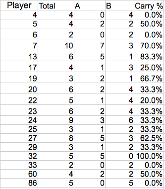 32 | BYRON, PAUL | 14:06 | 7 | 3 | 01:18 | 1 | 0 | 00:49 | 0 | 0 |