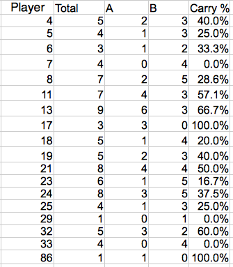 32 | BYRON, PAUL | 11:52 | 4 | 2 | 00:08 | 0 | 0 | 00:30 | 0 | 0 |