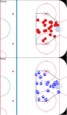 Away | 2 | 0:46 | Deflection | 1 | 4 | 6 | 11 | 17 | 19 | 12 | 18 | 23 | 36 | 44 | 47 | 5v5 |