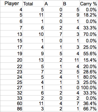 32 | BYRON, PAUL | 12:24 | 4 | 10 | 00:01 | 0 | 0 | 00:47 | 0 | 1 |