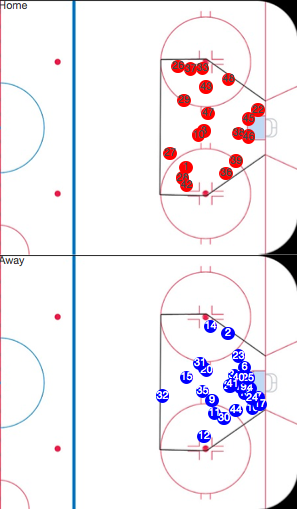 Away | 1 | 4:03 | Scrum in front of net | 20 | 31 | 32 | 43 | 74 | 1 | 4 | 6 | 13 | 22 | 23 | 4v5 | |