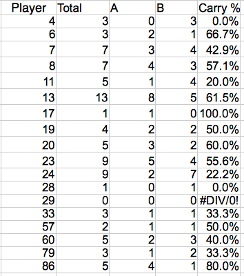 6 | WIDEMAN, DENNIS | 23:11 | 6 | 14 | 03:32 | 2 | 1 | 03:41 | 0 | 0 |