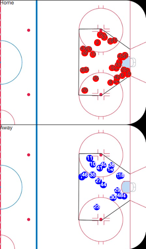 Away | 1 | 14:24 | Backlund goal | 3 | 18 | 31 | 36 | 51 | 53 | 4 | 6 | 11 | 13 | 19 | 37 | 5v5 |