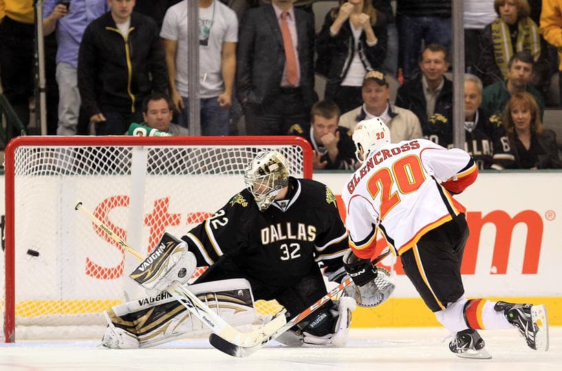 The extra frame was great to watch, as both teams had scoring chances, including Kiprusoff robbing Alex Goligoski and Kari Lehtonen making a number of great saves at the other end, including a goal line stand on Matt Stajan. Then off to a shootout, where Alex Tanguay and Mike Ribeiro would score respectively, setting up an opportunity for Glencross to finish it off…a nice little hesitation would give him a little room to do just that, for a 4-3 Calgary win; their eighth shootout win this season.