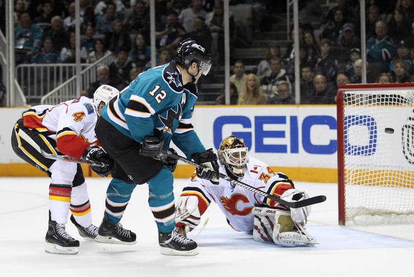 An absolute whoopin started right from the get-go, and the Sharks had a 1-0 lead at the three minute mark, with Joe Thornton’s cross corner dump being recovered nicely by San Jose, and after a quick cycle, former Flame Jamal Mayers would feed Torrey Mitchell in front for his eighth of the season. But, on their only powerplay of the night, Calgary would draw even at 7:13, as an Olil Jokinen pass deflected off a San Jose stick and right to Jarome Iginla at the side of the net. The captain would chip it up and over Antti Niemi for his 34th and a tie game. The Sharks would strike back just over two minutes later with an NHL first; on a fast break, Andrew Desjardins would rip home his first career goal for another one goal lead. And then another tie game, with a bad Sharks give away ending up on the stick of Cory Sarich at 13:59 and him rifling his fourth of the season past Niemi from the point, and somehow, Calgary was even in this game at two. But just one minute later, San Jose would gear up and take a lead they’d never relinquish again. Patrick Marleau would break in untouched from the blueline in, put a nice move on Miikka Kiprusoff for a 3-2 bulge. The Sharks would go up 4-2 on the powerplay, with Marleau getting it done again on a scramble in front at 17:33. Calgary was within two after one period of play, but probably shouldn’t have been, as they were absolutely worked in the opening 20 minutse, with scoring chances going San Jose’s way by a 12-3 count. Yikes.