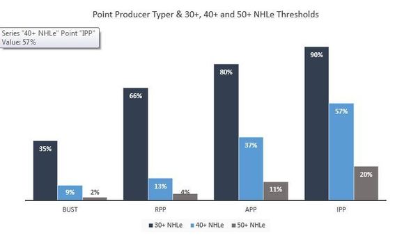 - Of the sample population of players to never record a 30+ NHLe … only 18% turned into at least average point-producers.