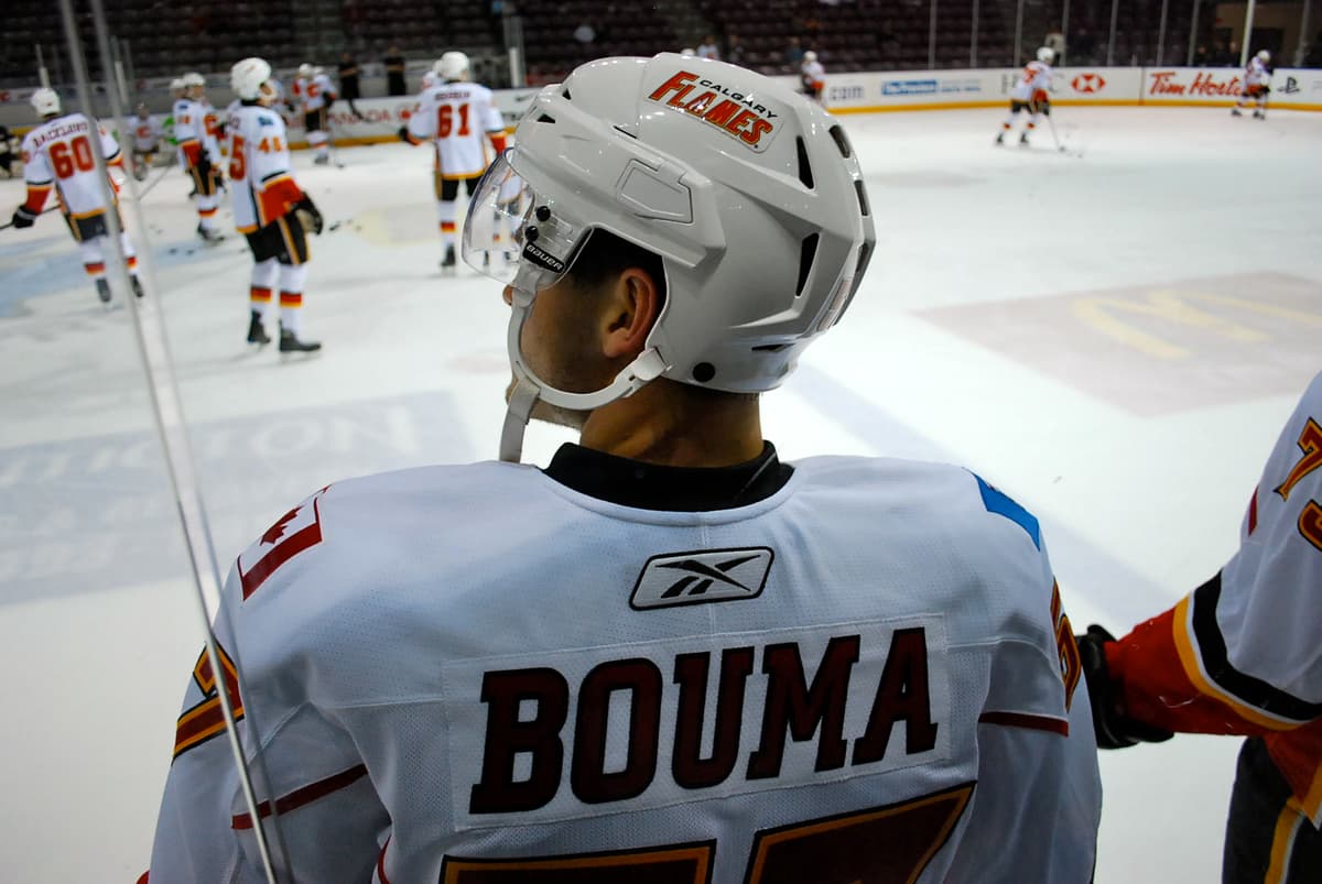 Lance Bouma and Greg Nemisz get ready during some pre-game skates.