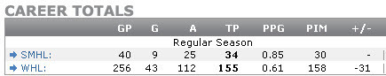 numbers are reasonable, 256 games, 0.61 ppg, 158 PIMs and -31, which is largely
