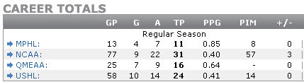 42 PIMs and an even +/-, although I have to admit that last stat could be the