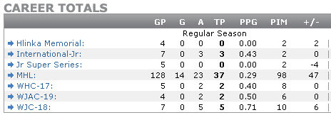 in the MHL, the KHL’s farm league. 126 games has a 0.29 ppg average, although