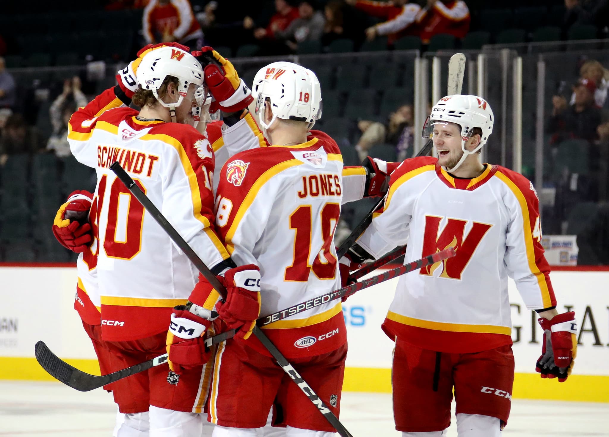 The Calgary Wranglers and Ontario Reign faced off on Friday night for a possible playoff-clinching night for Calgary. They had a few scenarios that would guarantee their spot in the 2022-23 Calder Cup Playoffs. A win or a San Jose Barracuda loss would do it or an overtime or shootout loss for both the Wranglers and Barracuda would also allow them to clinch on Friday night. Well, the Wranglers took the easy route and did the job themselves with a 2-0 regulation win against the Ontario Reign and the title of the first team to clinch a spot in the Calder Cup playoffs for the 2022-23 season.