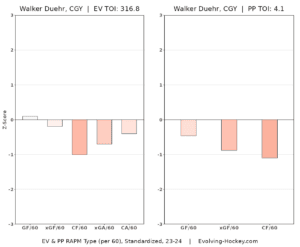 Here is Duehr’s 2023-24 RAPM chart from Evolving-Hockey. Needless to say, it’s a different feeling looking at this one, considering the larger sample size, than it is looking at his from 2022-23.