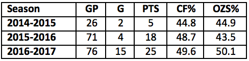 It is important to note how high Ferland’s shooting percentage was last season, which is the only indicator that points to regression. At 14.2%, Ferland shot the lights out in 2016-17 and he’ll see that come down at some point, likely next season. However, if he continues being a solid possession player, I think 10-20 goals per season is reasonable even when his shooting percentage normalizes a little bit.