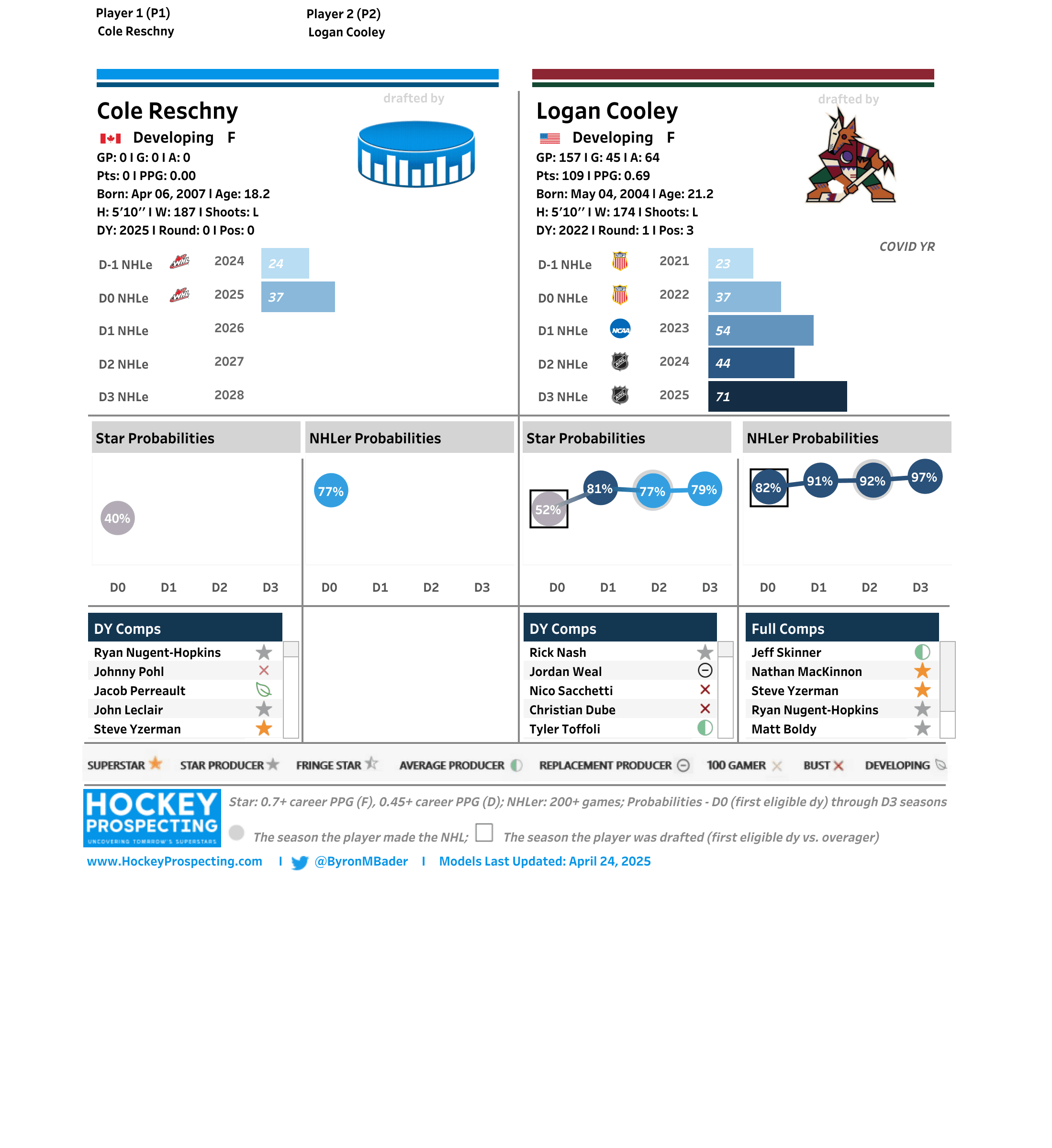NHLe is not perfect but it does give an incredibly informed insight towards possible patterns. What happens after the draft is extremely important because, as we know, sometimes prospects do not live up to potential. It at least provides an unbiased platform to compare statistical seasons across leagues and find historical comparables. Cole Reschny looks like a guy you could turn into a Ryan Nugent-Hopkins type player, but then again he could end up like Jacob Perreault’s too. Does your organization have what it takes to develop playmaking talent like this? That’s the real question. I think the Flames do.