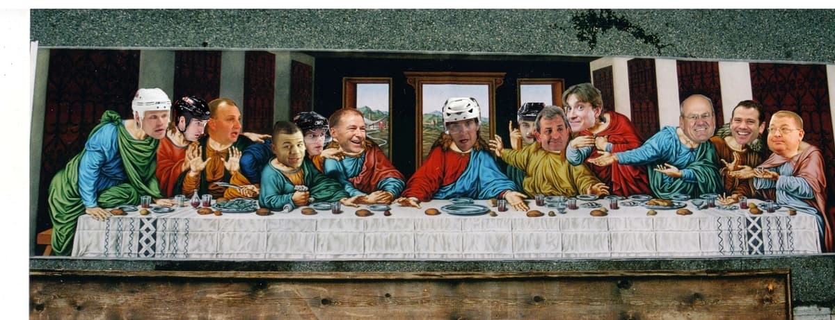 Ahh, the Last Supper. Always fertile ground for parody. Notice Kevin Lowe to the left.