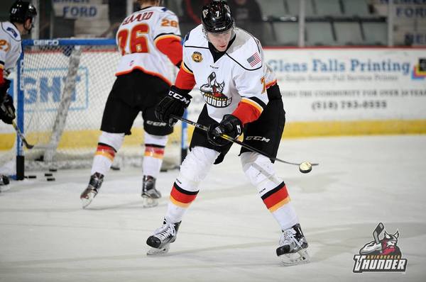 In terms of actual viewings, it’s not easy to get eyes on Adirondack Thunder games, so we are mostly dependent on second hand source material. For instance, have a look here at Falkovsky at 0:35, first scoring a goal on a one-timer (and then embracing his teammates and making them look like children):