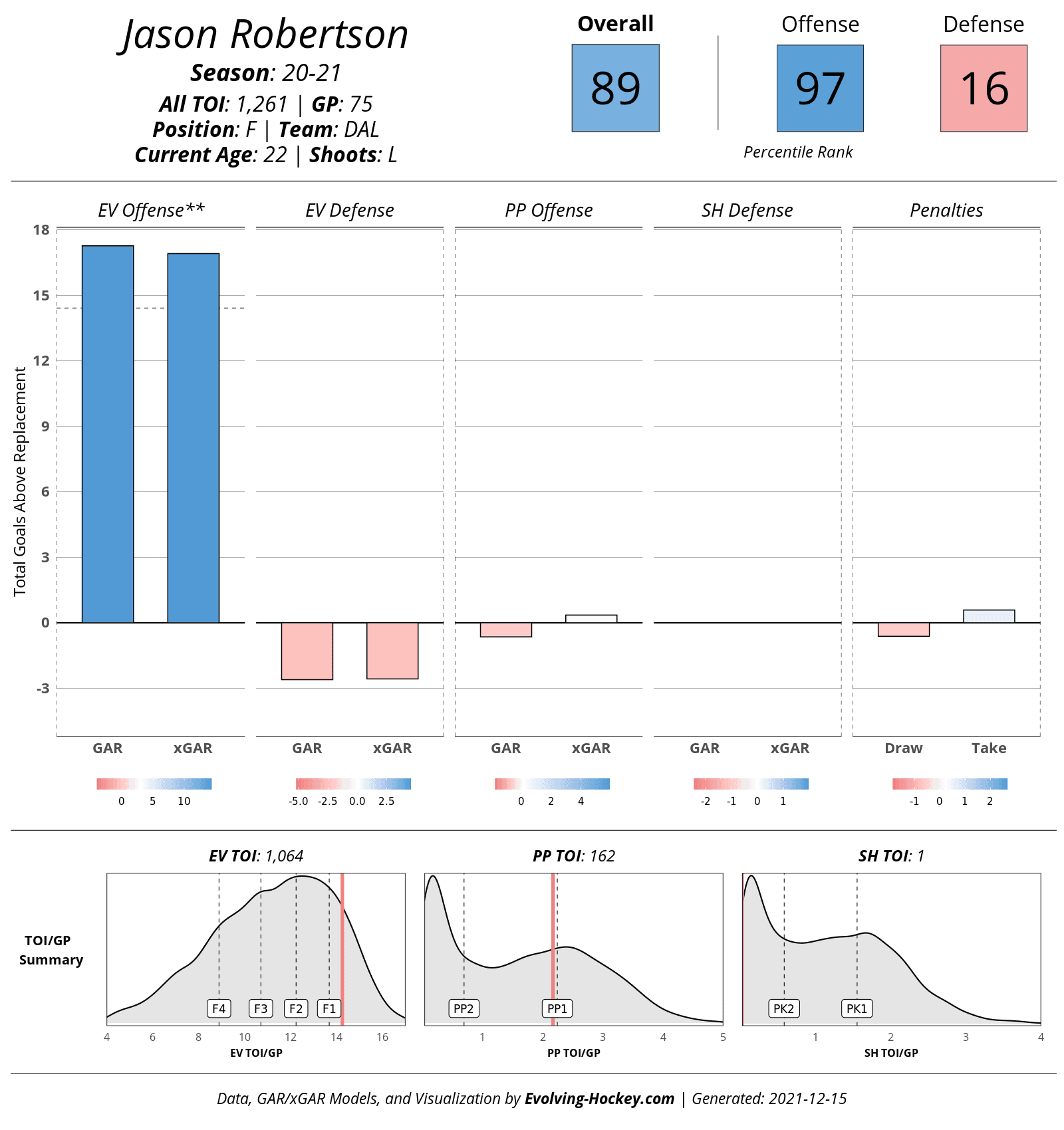 Note: All charts were grabbed as of Feb. 14/15, 2021 – any games that have occurred on or after these dates may result in the charts changing on either HockeyViz.com or Evolving-Hockey.com and appearing different to what you read here.