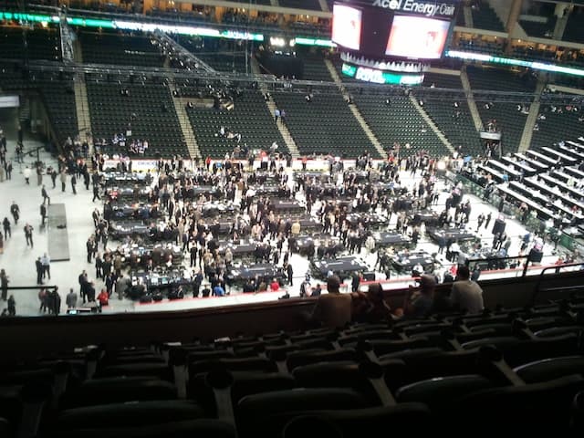 We set up my computer as best as possible and I began the FN live chat. Bob monitored things via his phone and kept a keen eye on the action on the floor. The first round dragged along at a snails pace and the arena was oddly and mercilessly cold inside. Perhaps in anticipation of the crowds, some over-zealous Xcel employee must have cranked the A/C up to 11. The icy draft seemed to travel up the wall of first floor seats and gust into the first balcony. At one point, an usher apologized for not being able to provide us with blankets. Bob probably suffered the most, being in shorts and a t-shirt the whole time.