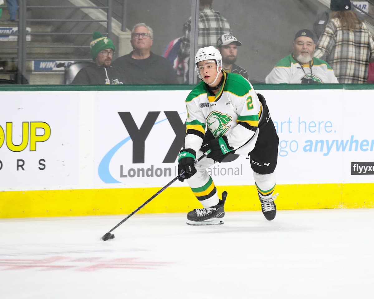 Bonk, the Knights’ top right-shot defenceman, will be ineligible for the OHL in the 2025-26 season, meaning Brzustewicz should get top pairing minutes alongside Sam Dickinson, as long as the San Jose Sharks prospect doesn’t make their roster.