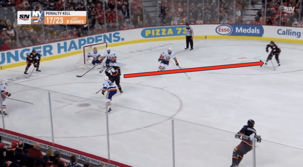 The Flames scored a massive power play goal against the Islanders