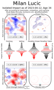 It’s easy to see in this visual that the kind of effect Lucic had on the lineup was entirely negative. Not only did he not contribute offensively, but his defence was abysmal, and he took an exorbitant amount of penalties, some of which ended up costing the Flames valuable goals against.