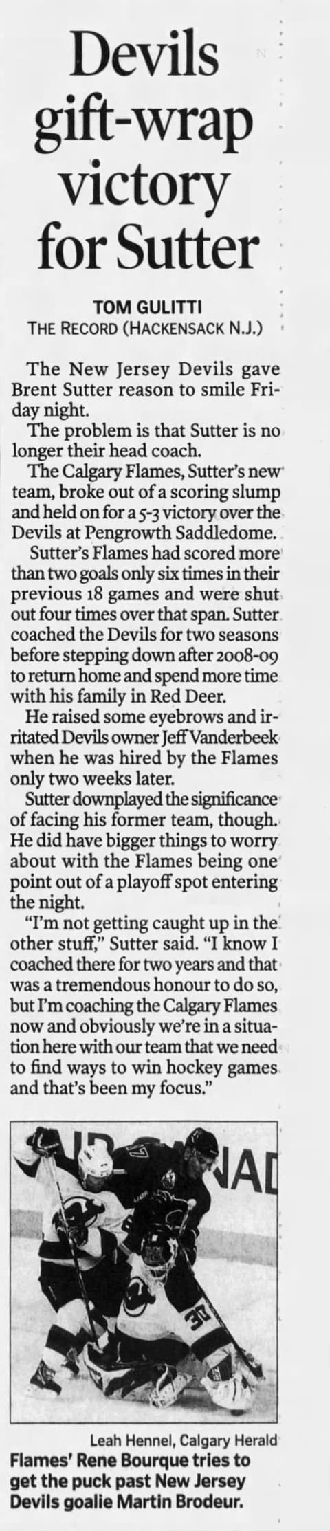 The Flames had struggled to score, The Record’s Tom Gulitti wrote the Flames had scored more than two goals only six times in their last 18 games and were shutout four times over that span.