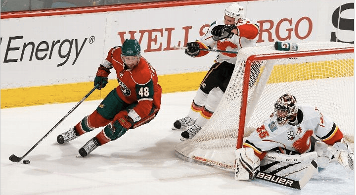 Statistical oddity — Miikka Kiprusoff played more of the game and allowed two fewer goals, but he nevertheless gets saddled wirh the loss because the one tally he allowed happened to the game-winner . . . Niklas Hagman picked up an assist Sunday but he and Ales Kotalik still have just produced a total of just two goals and eight points in 33 combined games since being acquired by Calgary . . . Yes, we all know Sportsnet has to pay bills and try to recoup the money they pay for Flames rights, but the network needs to show better judgment on telecasts. After a first-period whistle, Flames captain Jarome Iginla obviously had a bee in his bonnet and was making a long skate to get at a Minnesota player. Before we could find out what would happen, there was a cutaway to a supermarket promo. When we returned to the action, the broadcast crew commented on Iginla’s orneriness but could not explain it and had no replay to tell the story we had missed . . . Minnesota’s Guillaume Latendresse says escaping the scrutiny and pressure of Montreal has allowed him to finally live up to his abilities. Something to remember some spring (not this one) if you’re thinking about taking Latendresse in your playoff pool.