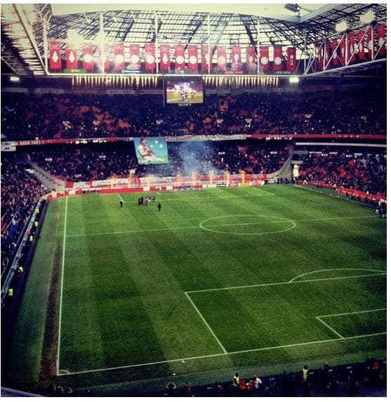 As we described in painful detail in an earlier article we went to an Ajax soccer game last week in Amsterdam. Owing to having two tickets together and one bought at the last minute we split up to sit in different seats – two down in the fancy pants section and your ol’ pal Wanye up high in the sky with a Swedish lady who had the misfortune of buying the single seat next to mine and was sitting apart from her friends too.