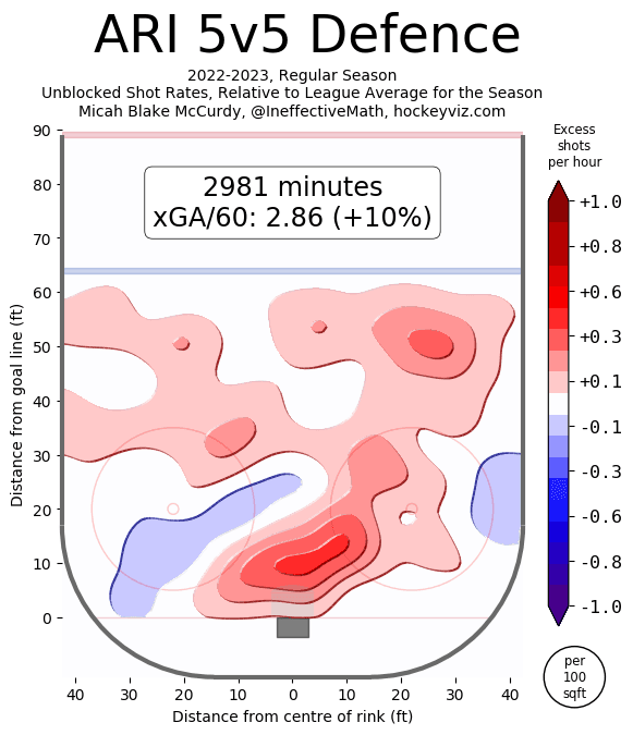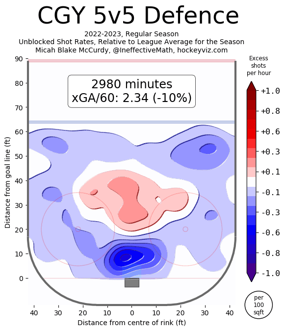 I will also go out on a limb and say that the level of chances against are going to go down significantly. Not due to anything he’s doing just based purely on situation. Lets compare how Calgary is defending as a team to the of the Coyotes: