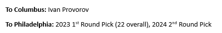 To Calgary: 2023 First-Round Pick (17th overall), 2023 Second-Round Pick (43rd overall)