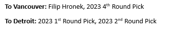 From a Flames perspective, they would acquire draft picks in exchange for taking on the contracts of Nils Hoglander and Conor Garland. And they would receive the 11th overall pick for Hanifin. The Flames get much needed draft capital as well as help on the roster to help keep them competitive in the short term.