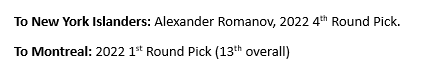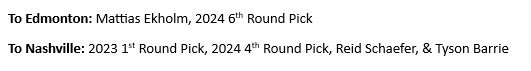 To Calgary: 2023 First-Round Pick (13th overall), 2023 Second-Round Pick (39th overall)