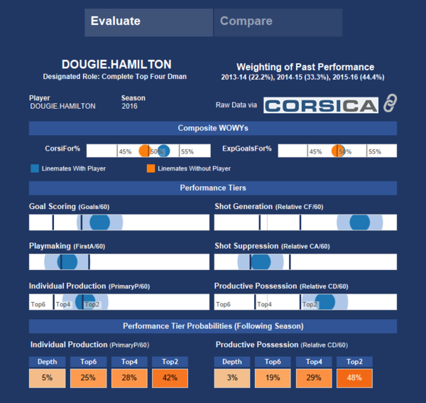 Why? Because he’s a premier offensive defensemen. Over the last two years, Hamilton places in top 20 amongst NHL defenders in terms of even strength scoring rate and top 10 in terms of PP scoring rate. Hamilton was also the best defender on the team in terms of driving shot attempts for last year – the Flames managed 57.53 corsi/60 with Hamilton on the ice.