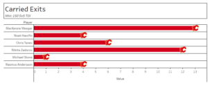Last season (and so far this season as well), Zadorov made sure to get involved in the rush from the back-end, especially when the team wasn’t getting much performance out of the big-name players. He felt it was his responsibility to try and create a spark, which he has done a couple of times. In 2022-23, he was second on the team in Carried Exits per Corey Sznajder’s data on All Three Zones.
