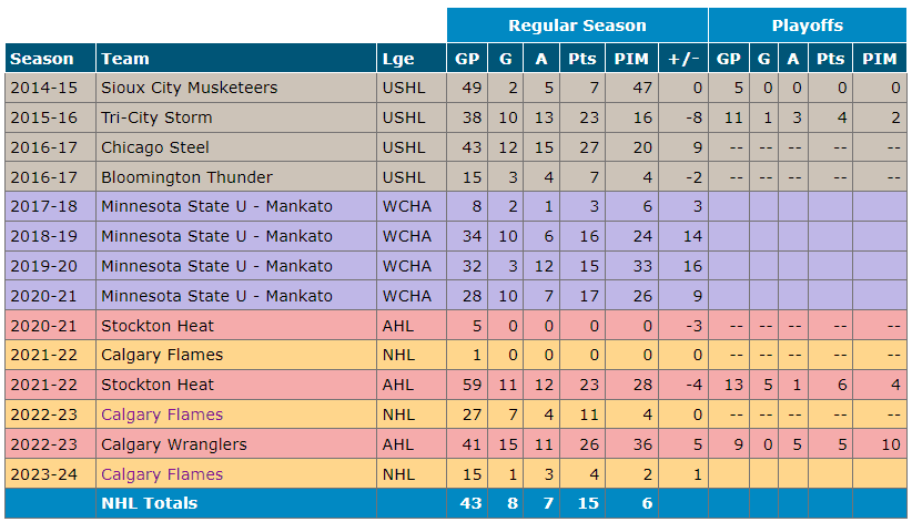 Unfortunately, that has changed 26 games into the 2023-24 season. Duehr has only suited up for 15 games with the Flames and has been in and out of the lineup as a healthy scratch.