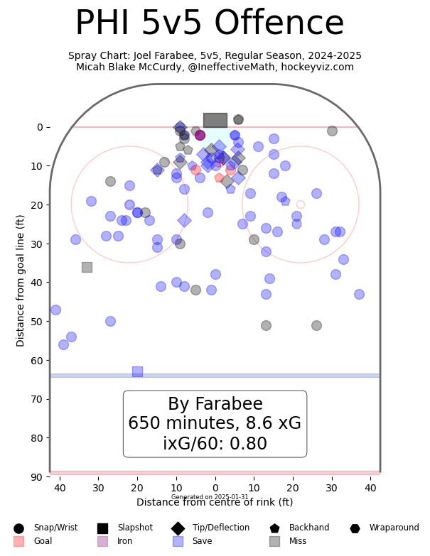 Outside of this season Farabee has always finished his chances off at a rate higher than league average.