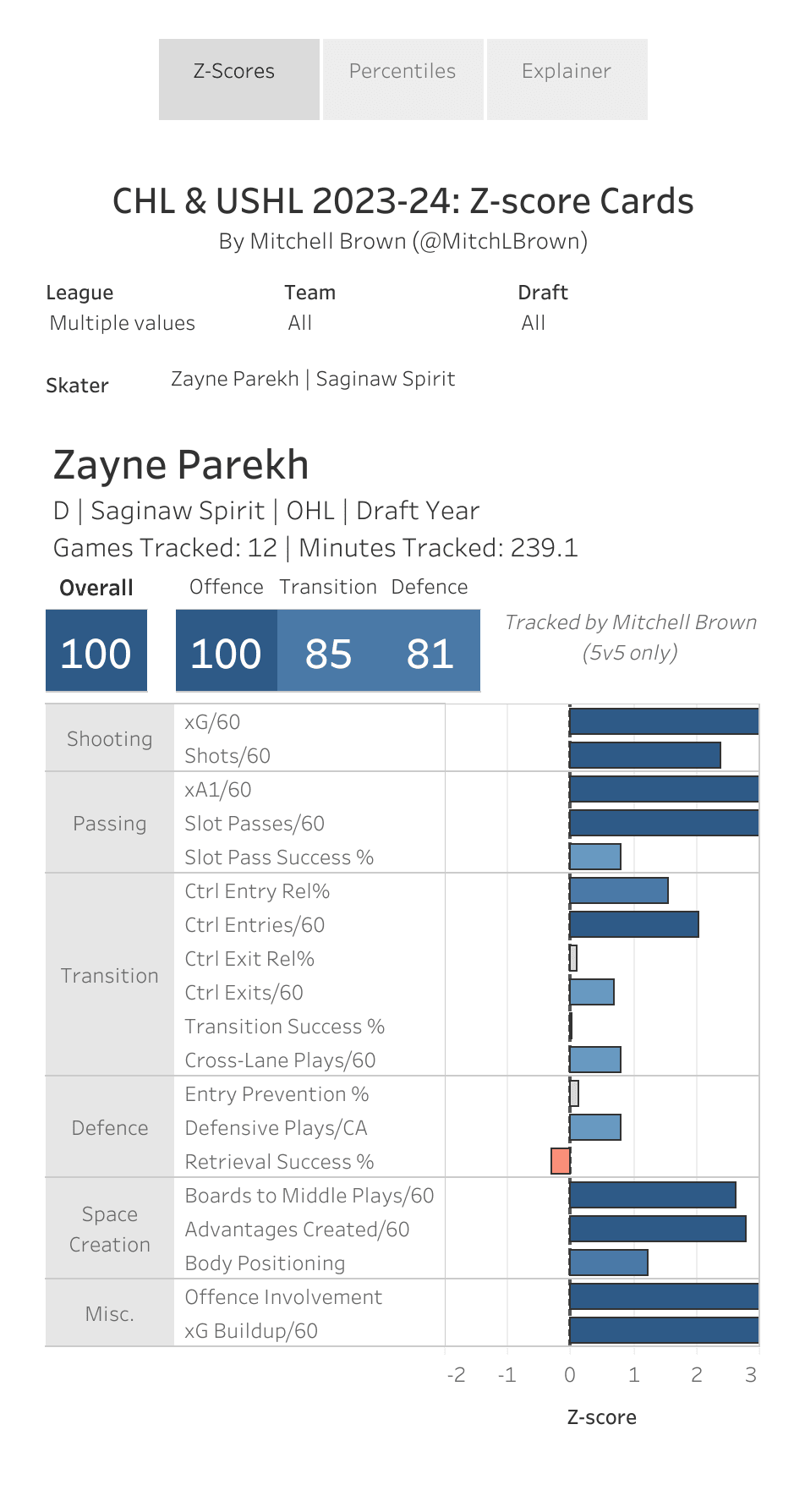 Parekh scored at a 0.5 goal pace throughout the regular season. In 66 games he collected 33 goals and 63 assists for 96 points. He was the CHL defenceman of the year for good reason beating out a ton of competition in a tremendous defenceman draft class for the honour.