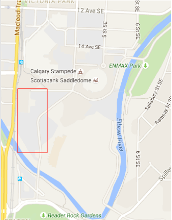 It doesn’t quite fit, and is a bit too tight with Weadickville (on the north) and the river (on the south) for my comfort. There’s a bit more space further south and east towards the Elbow River, but we’ll get into why that’s probably not an option – aside from the presence of the Grandstand and the chuckwagon course – in a little bit.