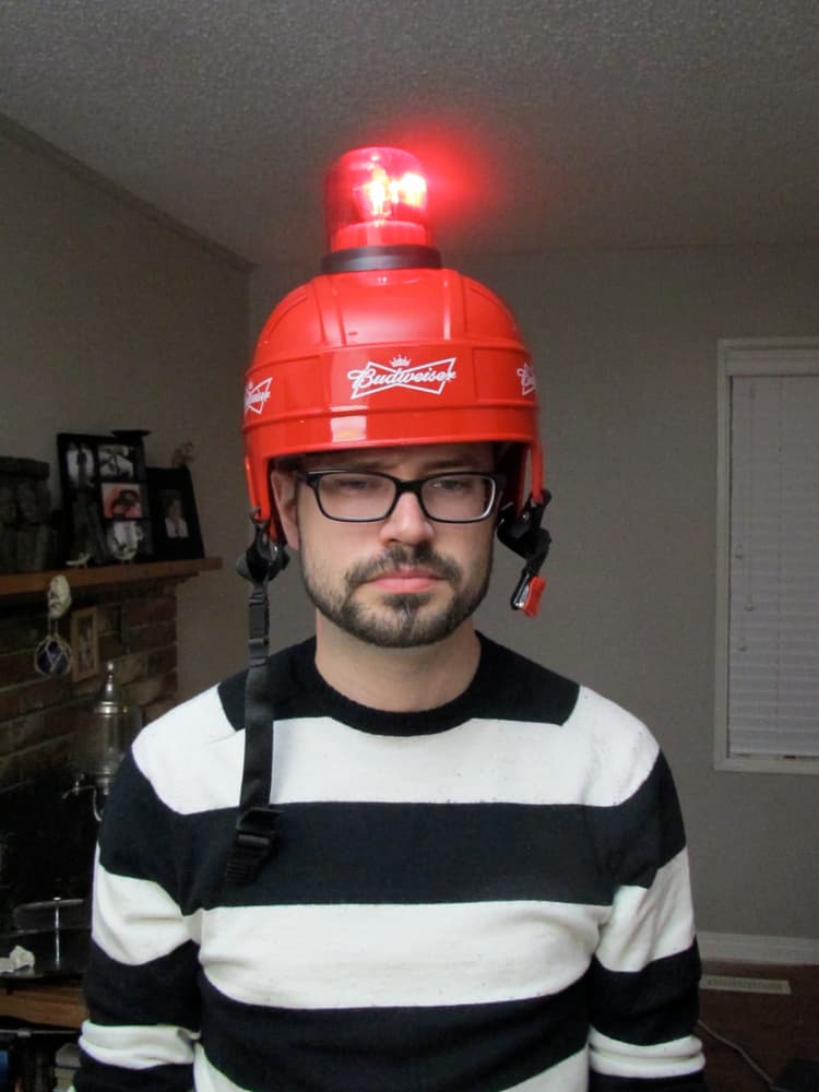 Alright folks…Budweiser sent me three of these here Red Light helmets and I’m going to give them away to FlamesNation readers. All you have to do is get an envelope, write out a blank check to me, put it in the envelope…